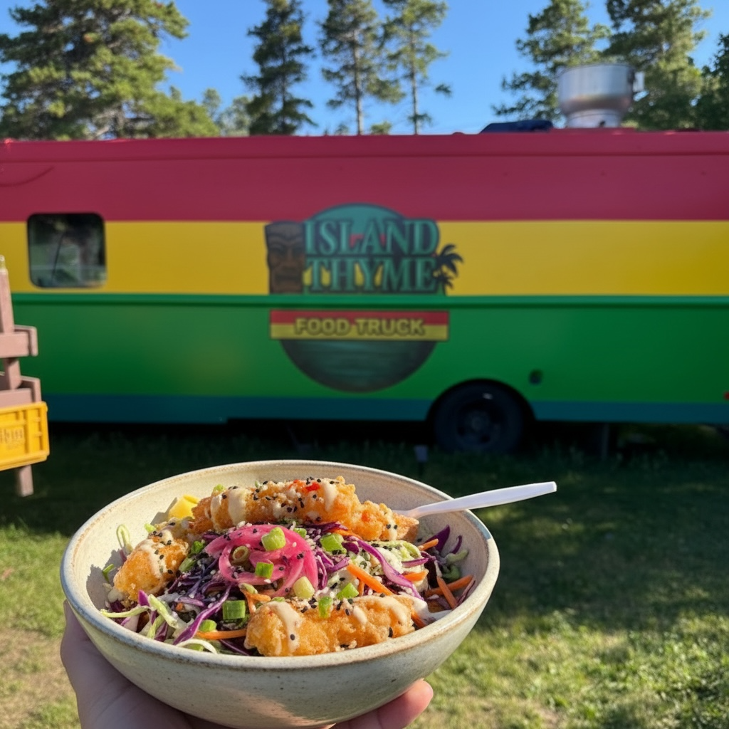 Island Thyme is more than a quick stop for great food-it’s a place to hang out. Reggae music playing, smokers billowing the vibe into the air, picnic tables full of smiles, kids and dogs nearby, and plates meant to be shared.